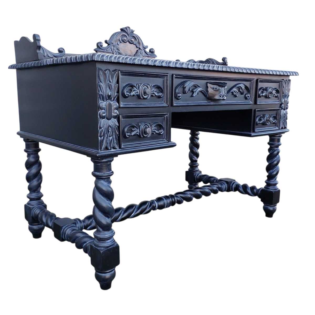 BERNARD MAHOGANY WOOD CARVED DESK ☆ Black